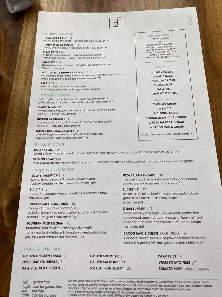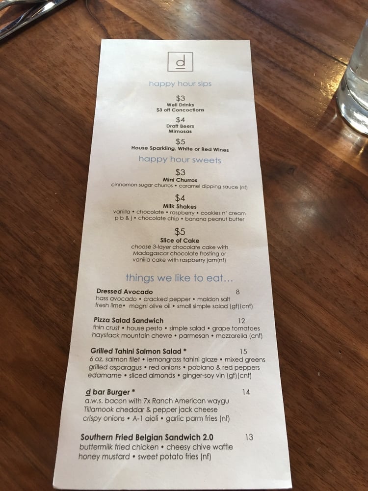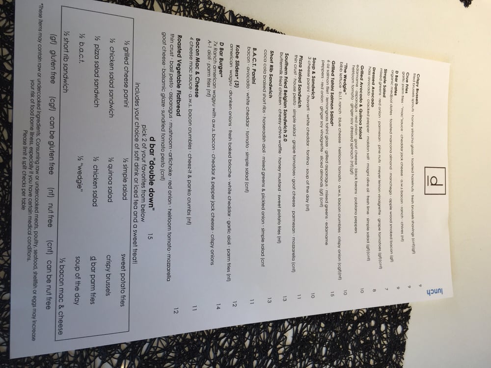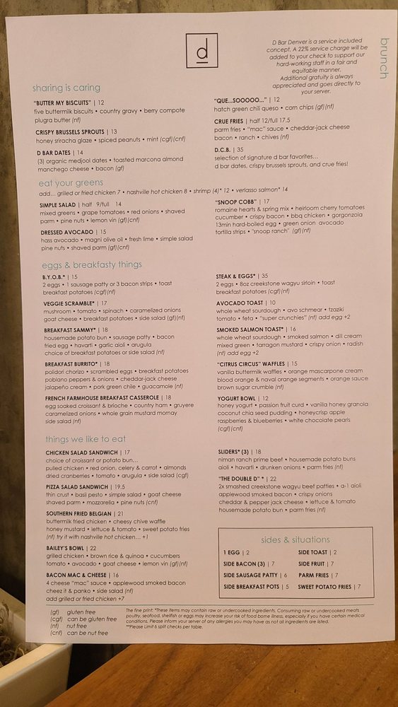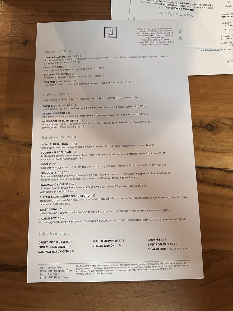 D Bar Denver Menu (2025 Update)